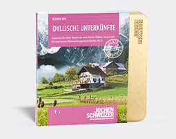 Lust auf Ruhe vor Jubel und Trubel? Geniessen Sie idyllische Unterkuenfte mit familiaerer Atmosphaere und freuen Sie sich auf Entspannung und malerische Landschaften. Die Erlebnis-Box 'Idyllische Unterkuenfte': Ist das perfekte Geschenk fuer alle, die eine idyllische Unterkunft suchen. Enthaelt 1 Gutschein fuer 1 Uebernachtung im Doppelzimmer inklusive Fruehstueck fuer 2 Personen. Bietet freie Wahl aus ueber 90 malerischen Uebernachtungsmoeglichkeiten in Deutschland und Oesterreich. Der Gutschein der Erlebnis-Box ist 3 Jahre ab Ende des Kaufjahres gültig. Laesst dem Beschenkten freie Wahl: Damit ist dieses Geschenk immer ein Volltreffer! In mehr als 90 Hotels in Deutschland und Österreich.