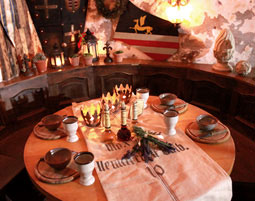 Im Herzen der Regensburger Altstadt liegen die historischen Gewoelbe des Apostelkellers. In diesem Gemaeuer aus dem Mittelalter wird das Ritteressen noch gemaess den Braeuchen und Sitten des 14. Jahrhunderts zelebriert. Bei sage und schreibe 7 Gaengen heisst es fuer Sie Tafeln bis der Ranzen spannt und die Knoepfe vom Wams springen. Dazu sorgen Gaukler, Spielleute und Maegde fuer vortreffliche Unterhaltung und Kurzweil. Neben den lustigen Tischregularien, dem Begruessungstrank aus dem Methorn und der alchimistischen Giftprobe darf natuerlich die fuerstliche Schnupftabackschleuder nicht fehlen. Und so bleibt zum Schluss hoechstens die Frage offen: Warum ruelpset und schmatzet Ihr nicht hat es Euch nicht geschmacket? Sichern Sie sich Braten und Keule und brechen Sie eine Lanze fuer die Tischmanieren der alten Rittersleut