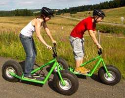 Jetzt kommt das Erzgebirge unter die Raeder! Und zwar unter die extradicken Breitreifen Ihres mit Scheibenbremsen ausgeruesteten Monsterrollers. Mit der Schwebebahn geht es auf den Fichtelberg und dann ueber Stock und Stein, Wiesen und Wurzeln in rasanter Fahrt ins Tal hinab. Nach gut 8 km Abfahrt durch die Erzgebirgsnatur erreichen Sie den Bahnhof Vierenstrasse und koennen sich gleich ins naechste Vergnuegen stuerzen: auf zur Rueckfahrt mit einer der aeltesten Schmalspurbahnen Deutschlands! Damit Sie sich voll und ganz aufs Monsterroller-Fahren konzentrieren können, sind in diesem Paket 2 Übernachtungen bereits mit drin. Zähmen Sie das Monster und riskieren Sie einen breiten Reifen! DE,Sachsen,Raum Annaberg-Buchholz,09484;