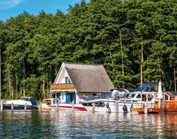 Geniessen Sie Ihren Kurzurlaub direkt ueber dem Wasser. Denn das Maisonette-Ferienhaus befindet sich wortwoertlich im Granzower See. Doch keine Sorge, fuer trockene Fuesse sorgen die Pfaehle, auf denen das Haus gebaut ist. So wohnen Sie nur wenige Zentimeter ueber dem Wasser und geniessen einen einzigartigen Blick auf den See. Diese Lage schreit foermlich nach Wassersport-Aktivitaeten. Daher steht Ihnen waehrend Ihres Aufenthalts fuer einen Tag ein Sportboot zur Verfuegung, mit dem Sie vom Wasser aus den herrlichen Naturpark erkunden. Geniessen Sie die romantische Atmosphaere und werden Sie see-lig!DE,Brandenburg,Granzow/Mirow am See,17252;